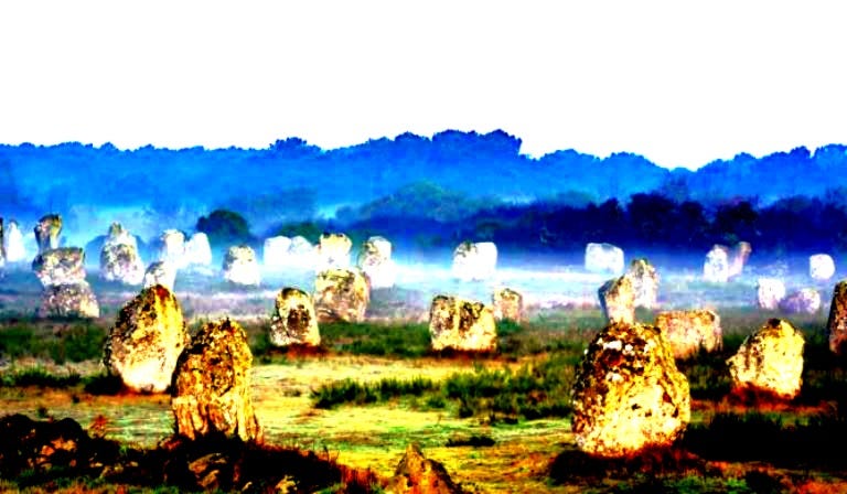 The next day they had an early start for a day-long trip to the standing stones at Carnac. The sky above the stone-fields was solid white, the bright white of sunlight diffused through featureless cloud. They squinted up at the glow of a hidden sun. The ranks of standing stones cast no shadows and kept their secrets. The air above felt charged like a storm brewing. When they laid hands on the menhirs, Dad insisted there was buzzing in his ears, but Livvie couldn’t hear it. Instead, she said it made her feel tense, like something was coming.